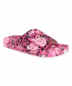 Wholesale ???? LUKEES By MUK LUKS Fuchsia Leopard Floral Island Tiki Slide – ???? Women ????