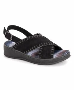 Cheapest ???? MUK LUKS Black Blanket Stitch Crisscross City High-Rise ???? Sandal – ???? Women ✔️