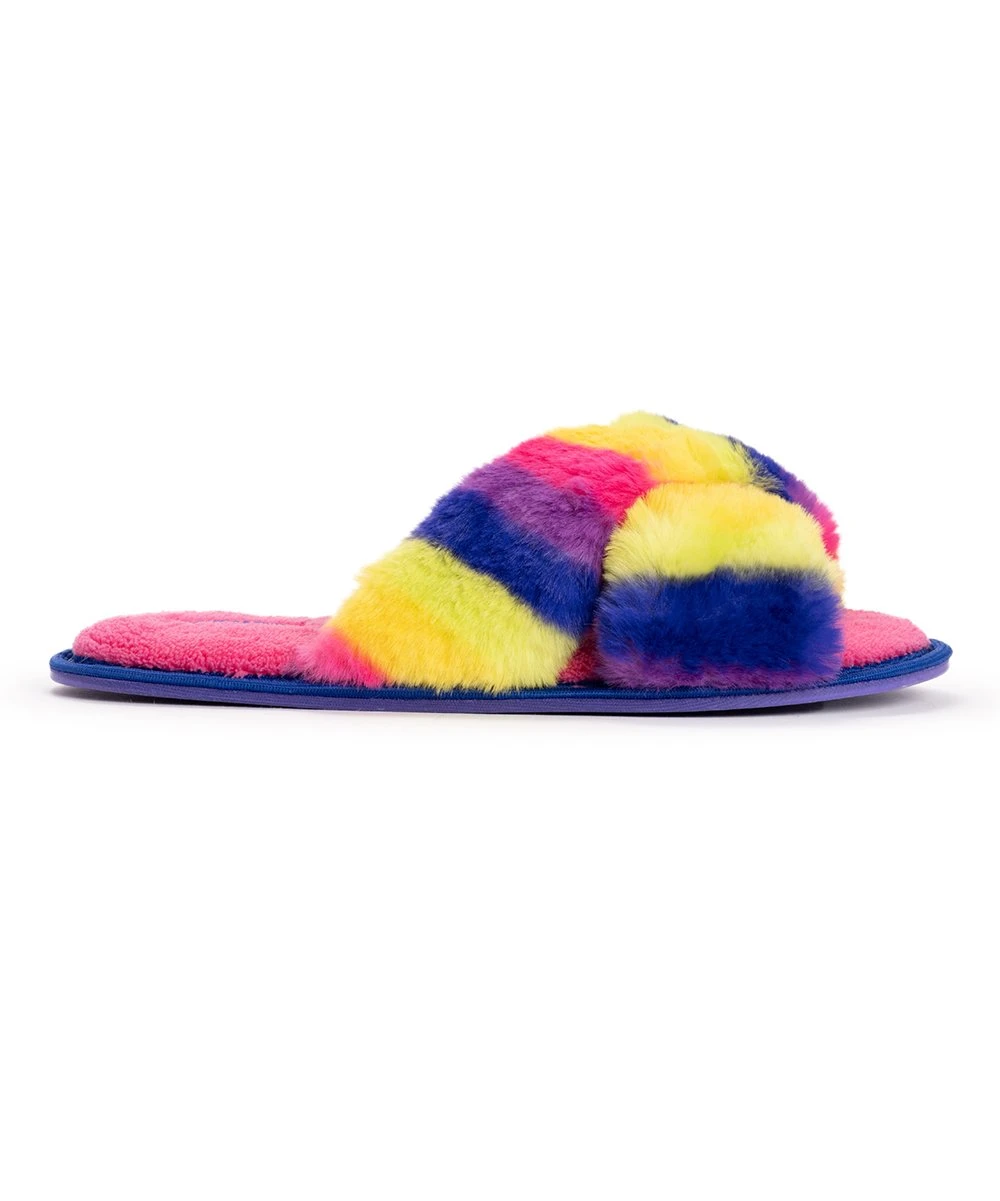 Flash Sale ✨ LUKEES By MUK LUKS Fuchsia & Yellow Rainbow Stripes Lara Slipper – ???? Women ✔️