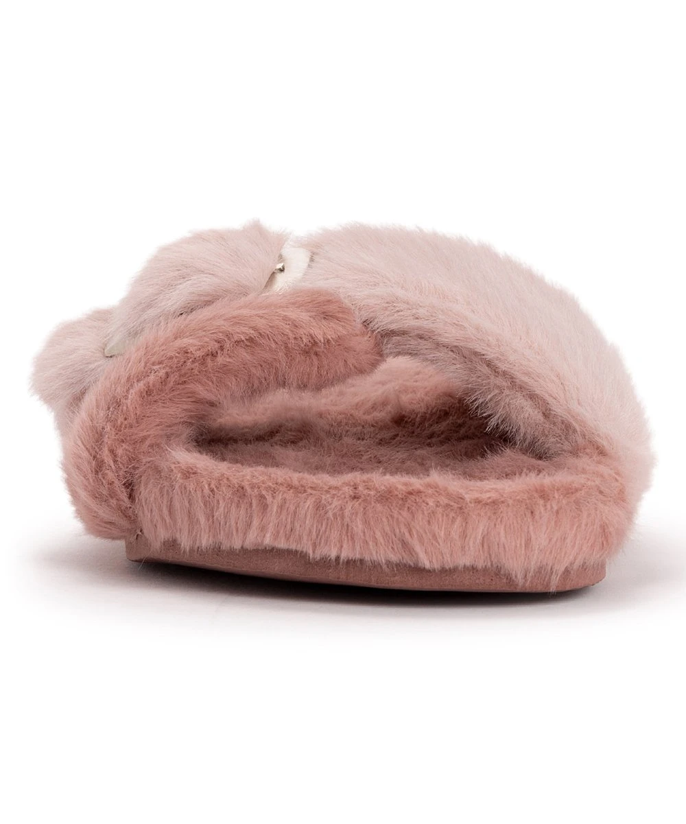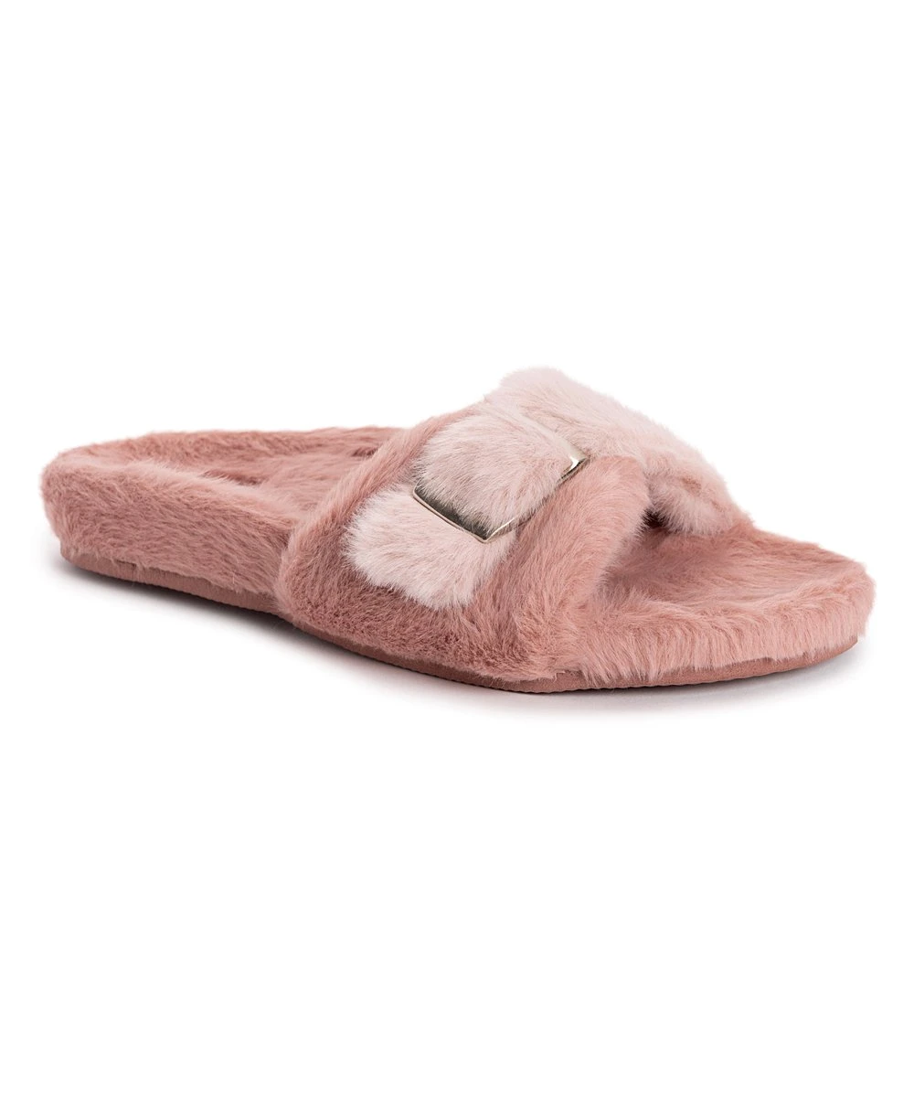 Slip into effortless style with this charming slide that flaunts soft faux-fur fabric finished with a chic buckle-accent strap.