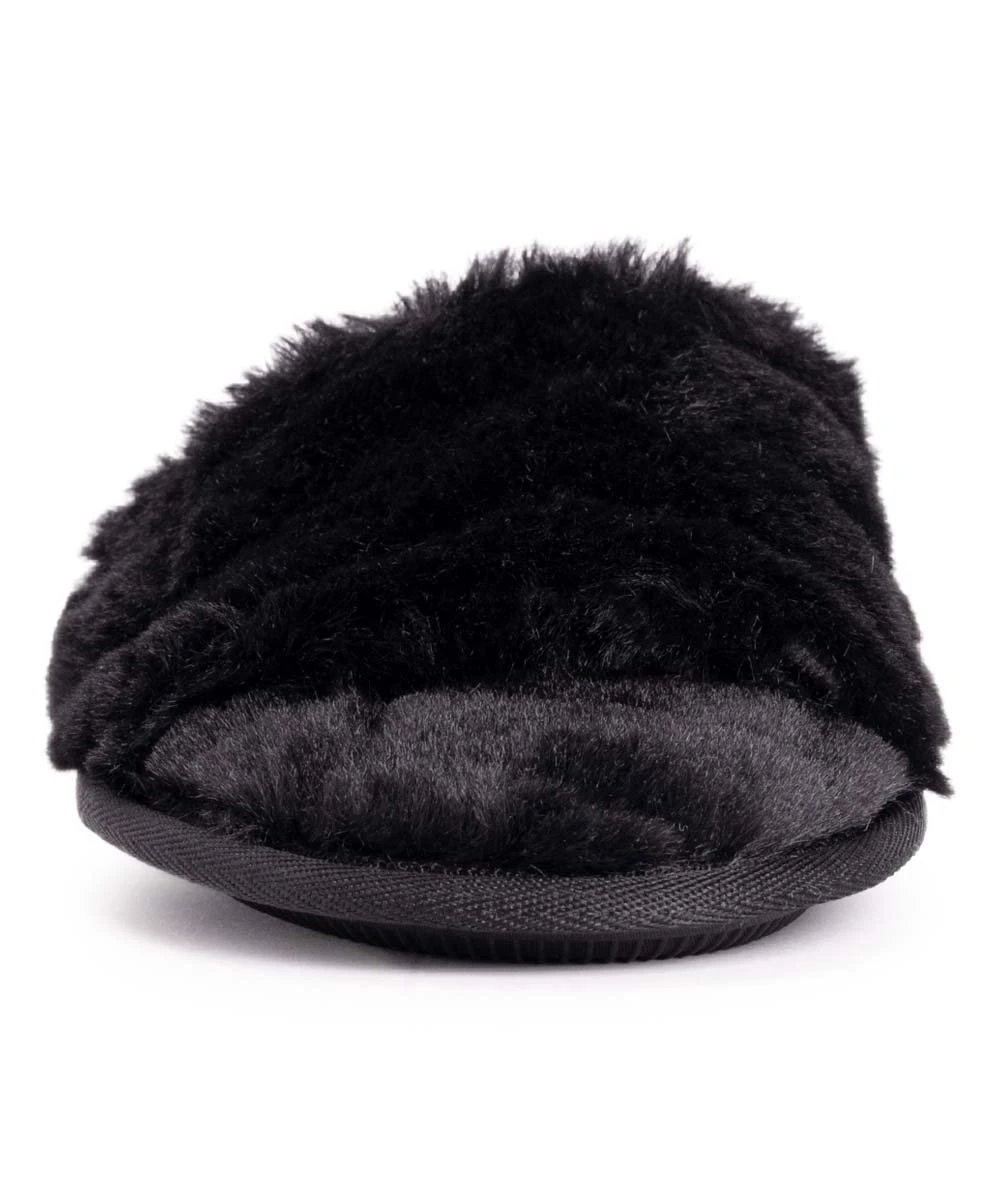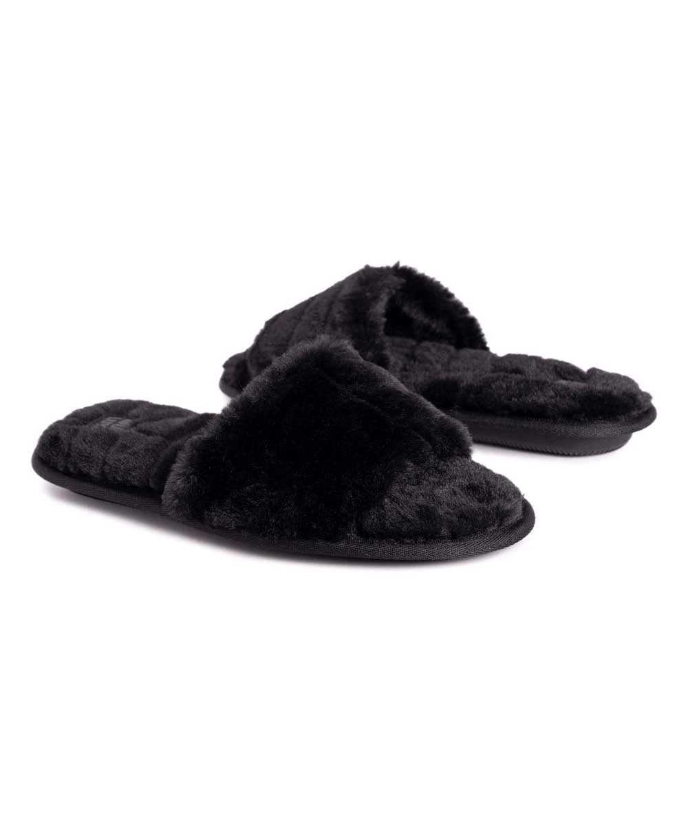Comfortable slippers featuring warm faux fur and memory foam insoles.