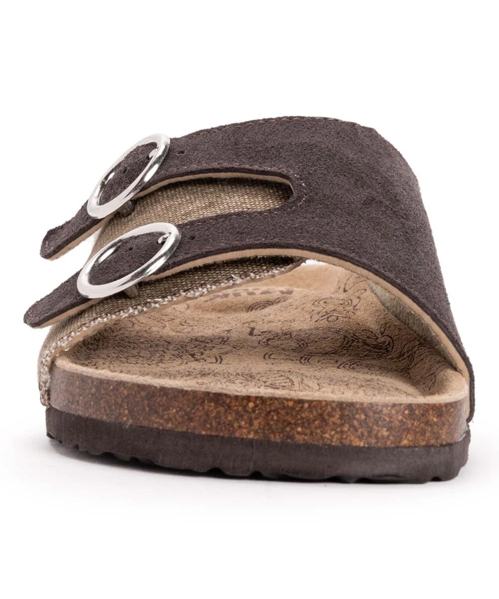 Comfortably stride from place to place in this pair of slip-on sandals crafted with adjustable buckle straps and a foam insole.