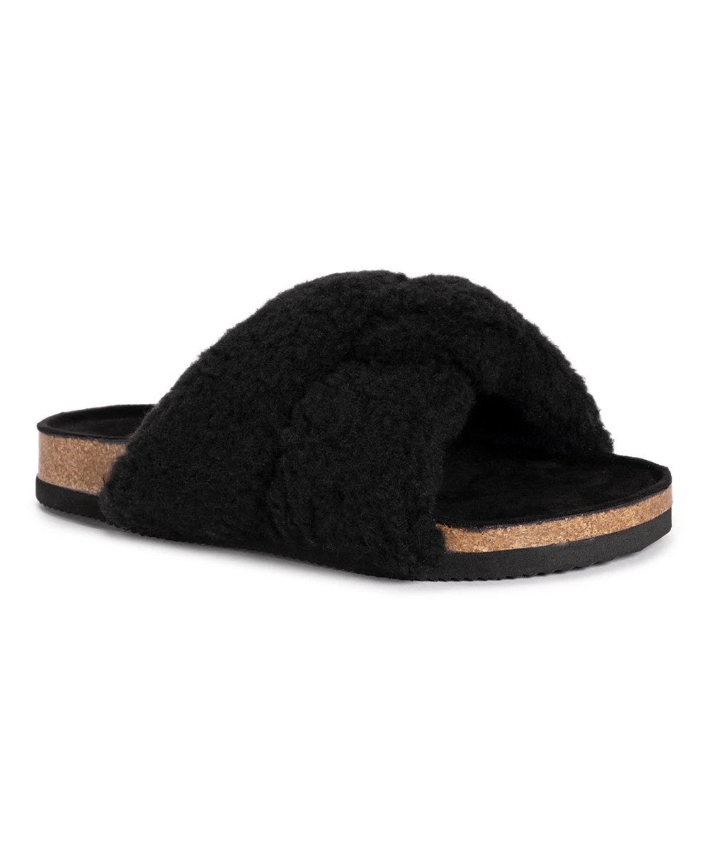 Pamper your feet during your PM routine by slipping on this open-toe slipper that boasts plush textured straps and a supportive contoured cork footbed.