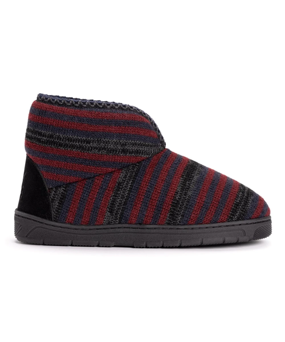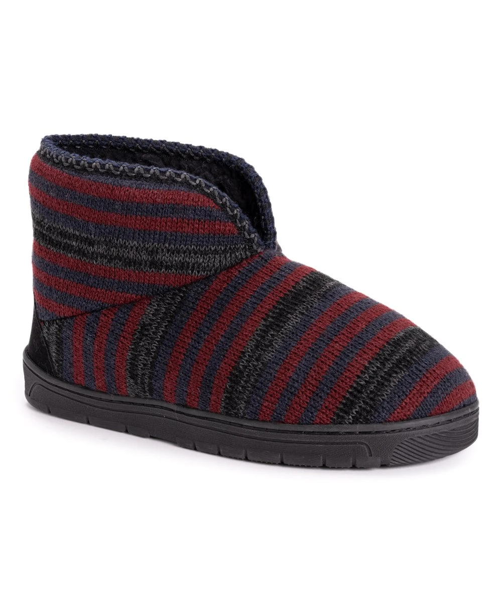 This knit pull-on bootie offers a soft plush lining and a durable sole that keeps him comfortable lounging both indoors and out.