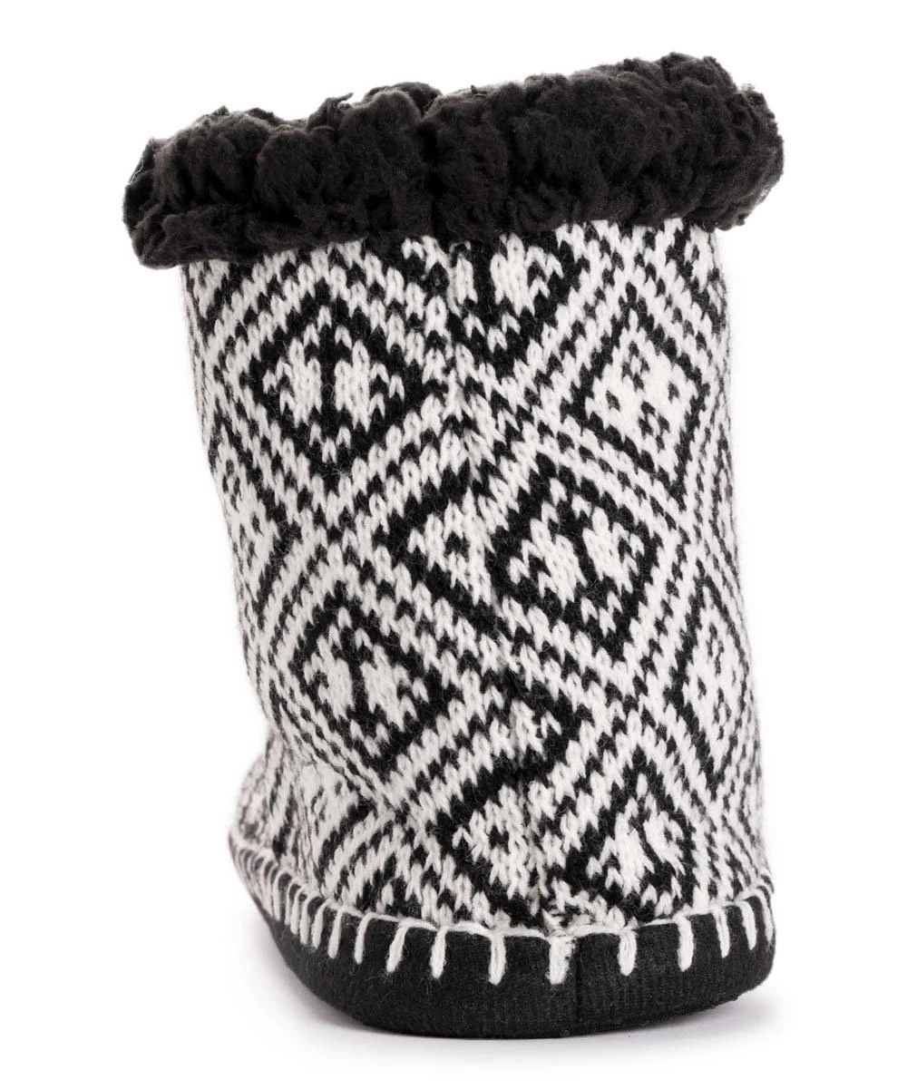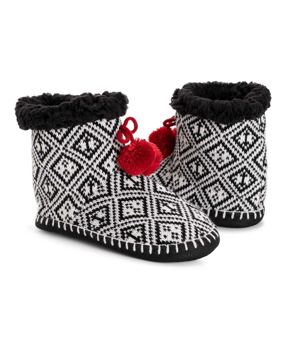 Comfortable booties featuring warm sherpa lining and a pom-pom accents.
