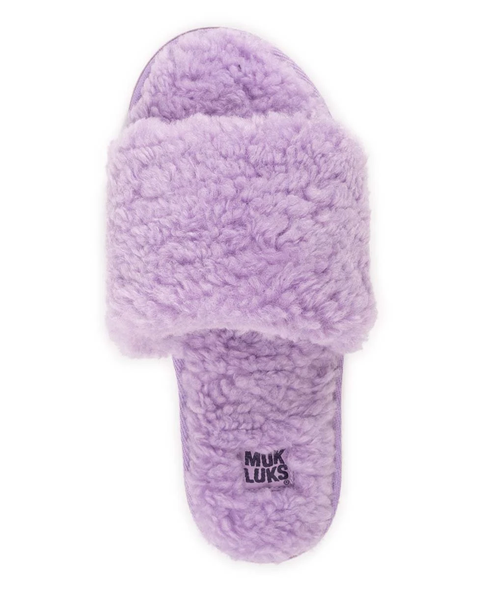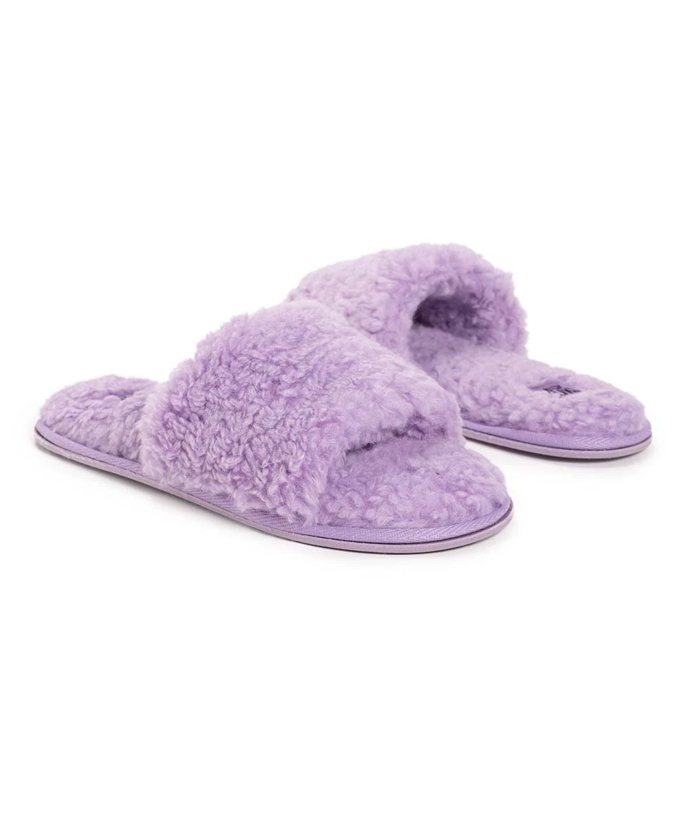Start your morning with a touch of comfort by gliding into this pair of slide slippers crafted with a memory foam insole and cozy faux fur upper.
