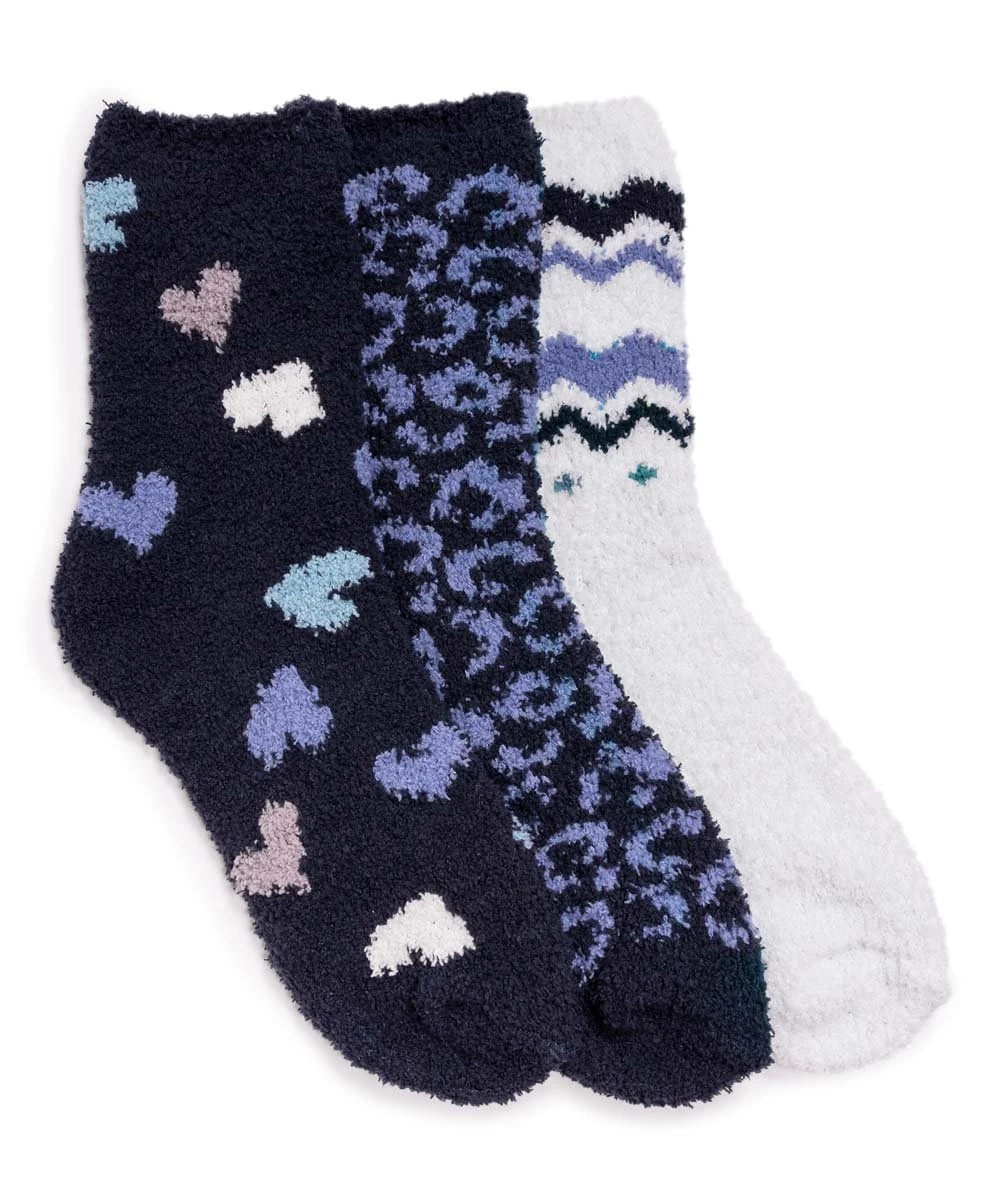 - Includes one navy and purple hearts pair, one navy and blue leopard pair and one white and blue zigzag pair of socks (three pairs total)