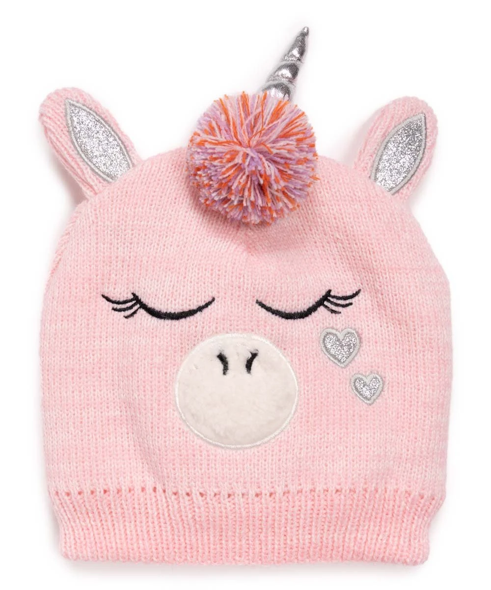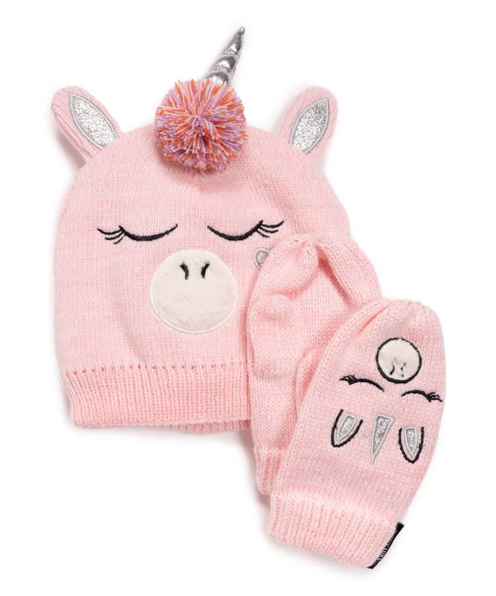 - Includes pink unicorn beanie and matching mittens