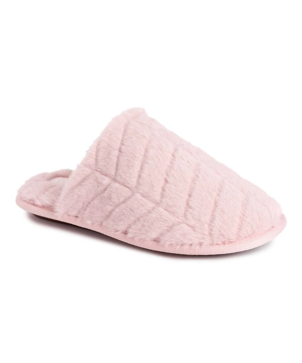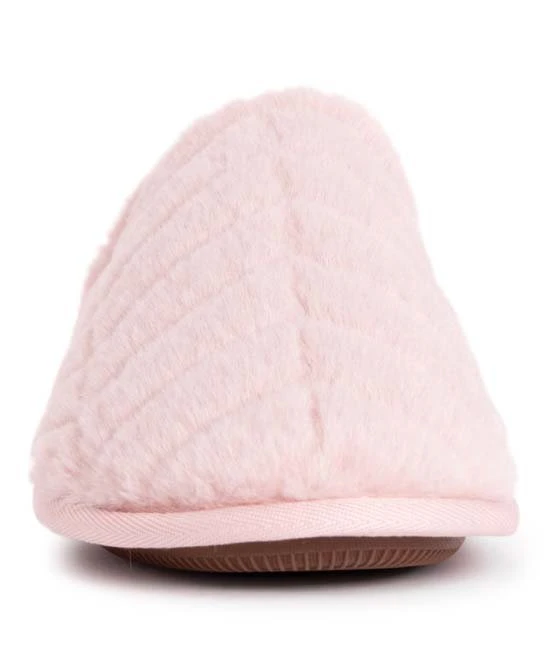 Comfortable slippers featuring fuzzy outer and warm faux fur lining.