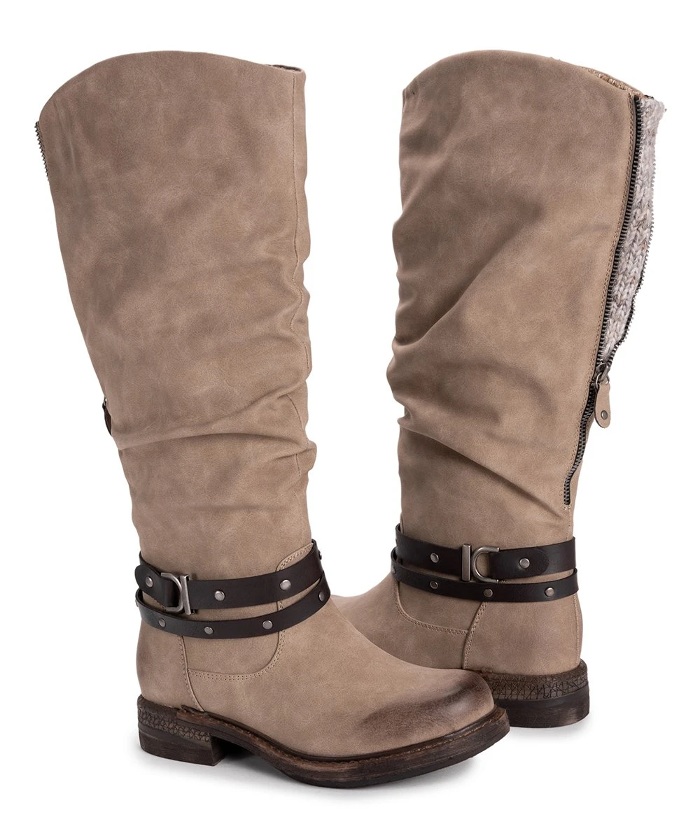 Complete your chilly weather looks with a bit of edgy flair courtesy of this pair of boots boasting a biker-inspired design.