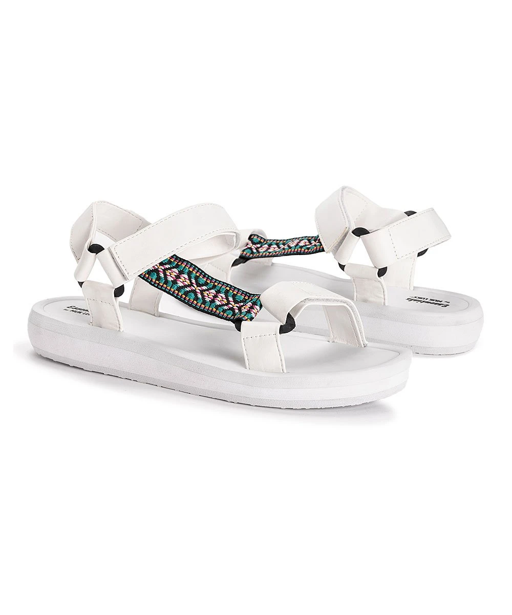 Discount ✔️ MUK LUKS White & Green Geometric All-In Asymmetrical ???? Sandal – ???? Women ????